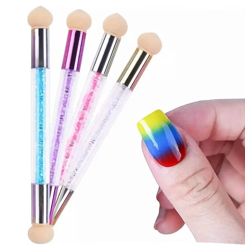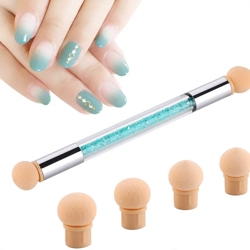 قلم آمبره اسفنجی، یکی از ساده ترین ابزارها برای ایجاد دیزاین آمبره در طراحی ناخن است. قابلیت شستشوی چندباره ی سری اسفنجی و همچنین وجود 4 عدد پد اسفنجی اضافی داخل پک، از مزیت های مهم و مقرون به صرفه این محصول به شمار می آید.به این نکات توجه کنید که روی سر اسفنجی قلم، چند رنگ دلخواه را به صورت موازی، لاک بزنید. قبل از خشک شدن لاک روی پد اسفنجی، آن را با حرکت ضربه ای به ناخن منتقل کنید. در مرحله آخر برای تثبیت روی ناخن ها، تاپ کت بزنید. بعد از اتمام کار، چند قطره استون را در مقدار کمی آب حل کنید و قلم اسفنجی را در آن فرو ببرید. سپس قلم را روی دستمال کاغذی زده و خشک کنید تا رنگ لاک کاملاً از روی آن پاک شود.