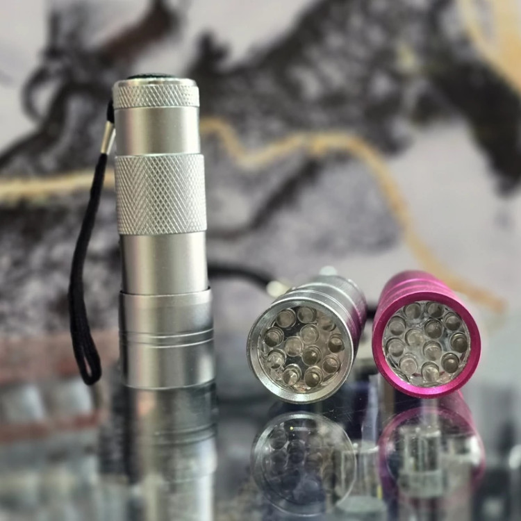 دستگاه یووی چراغ قوه ای کاشت ناخن با بدنه فلزی و 12 چراغ ال ای دی