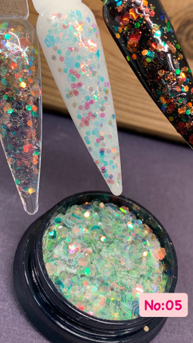 پک پودر کروم رنگی کاشت ناخن بسته 6 عددی